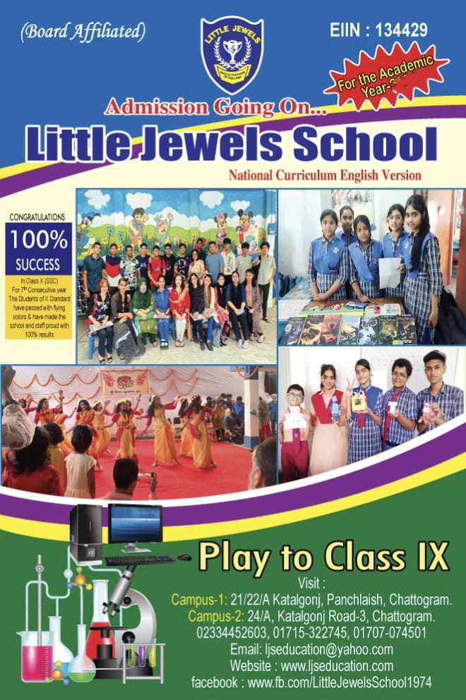 Little Jewels was founded in 1974 as the first English medium school in response to the need of English medium education. It started its journey with 7 expatriate children at the Chittagong Club premises. From then on was the humble beginning of the school that made education a joy for all. Little Jewels has produced outstanding students who have excelled in the 'O' and 'A' level examination and in their own fields. They encircle the world and are worthy global citizens. Little Jewels is from Play Group to `A' levels. This centre is created to give your children wonderful facilities in making them global citizens of the world. This institution is designed to provide with an enlightened education based on sound principles. The aim of this institution is to impart education to form a praiseworthy character and to develop in the student habits of true discipline and self-efficiency so as to enable them to become dutiful citizens. The school authorities welcome students of all creed provided they agree to abide by the rules. The religious feeling and freedom of conscience of Non-Muslim